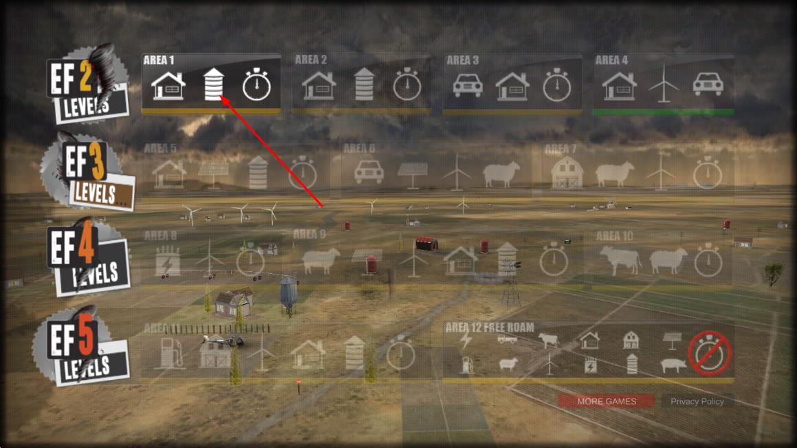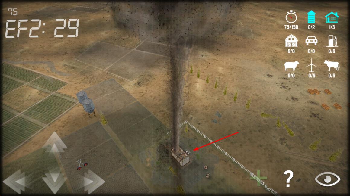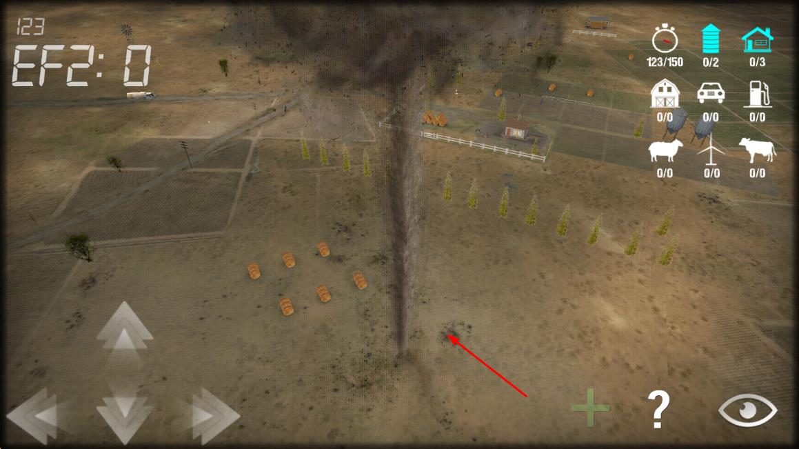 1、进入游戏后选择初始场景,滑动屏幕操控龙卷风移动,首次尝试可先在乡村区域练习吞噬低矮建筑。