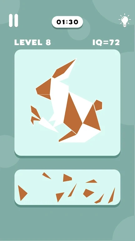 Tangram Shape Puzzle是一款以传统七巧板为核心玩法的休闲益智游戏,玩家需将七个基本几何板块(三角形、正方形、平行四边形)组合成目标图案,游戏采用清新简约的界面设计,结合现代动画效果,提供超过100个精心设计的关卡,从简单的基础形状到复杂的人物、动物、物品造型,满足不同难度需求。