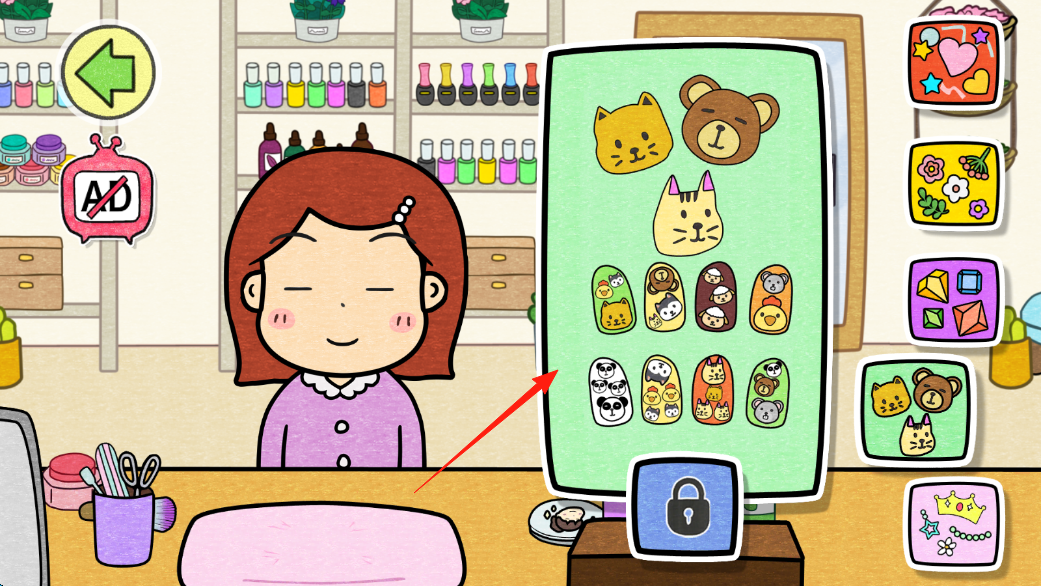 3、解锁新美甲展示板后,挑选可爱动物图案,设计专属美甲。