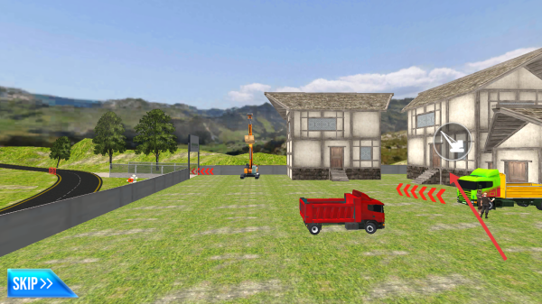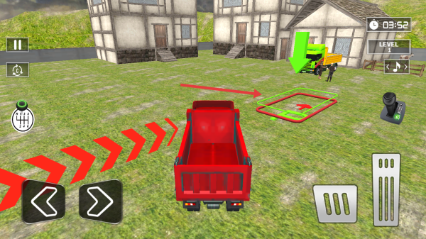 2、操控红色卡车,沿箭头指引,驶入绿色停车区域。