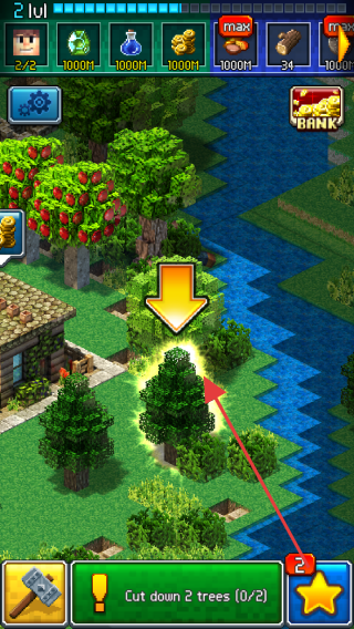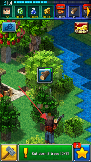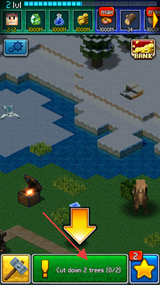 1、根据下方任务提示【Cutdown2trees(0/2)】,前往指定区域伐木。