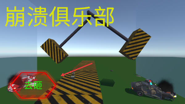 3、驾驶汽车穿过锤子区域,撞击障碍物,完成破坏任务。