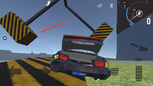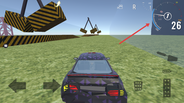 2、操控汽车,关注车速表,驶向巨型锤子障碍。
