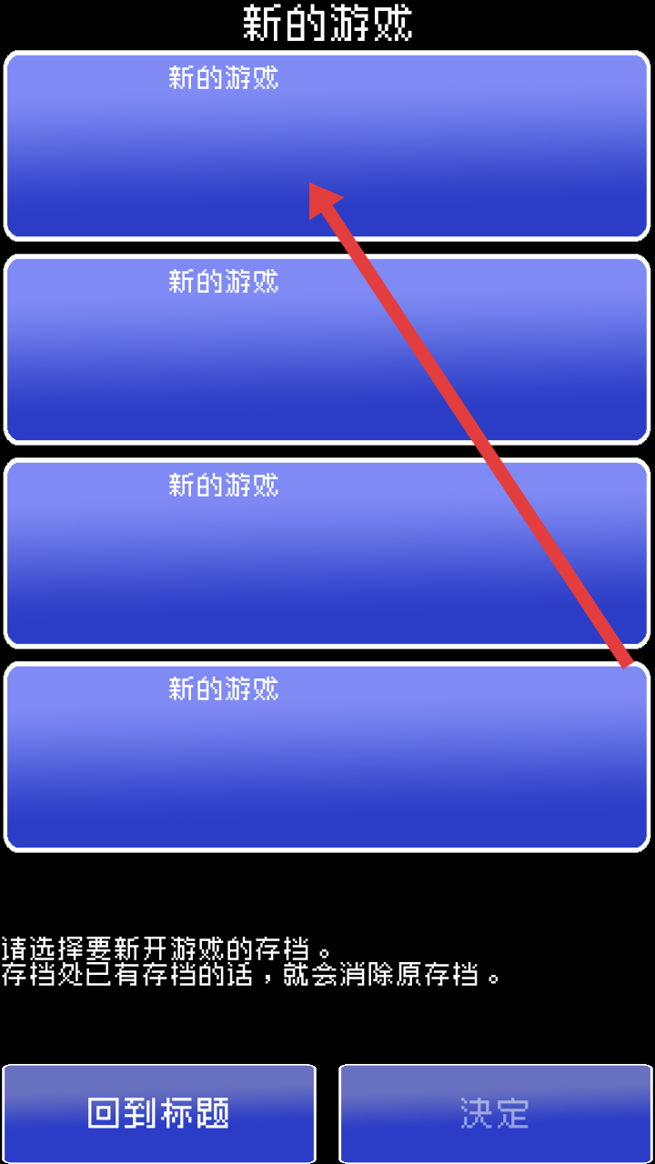 2、在存档选择界面,选定存档栏后点击【决定】,注意已有存档会被覆盖,开始新游戏进程。