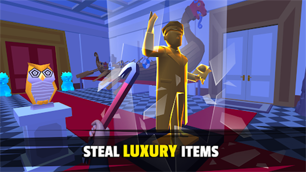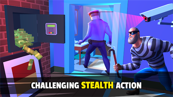 1、沉浸式盗窃体验:第一人称视角搭配卡通风格画面,还原真实盗窃场景中的紧张感,从破解密码到躲避巡逻,全程考验策略规划。