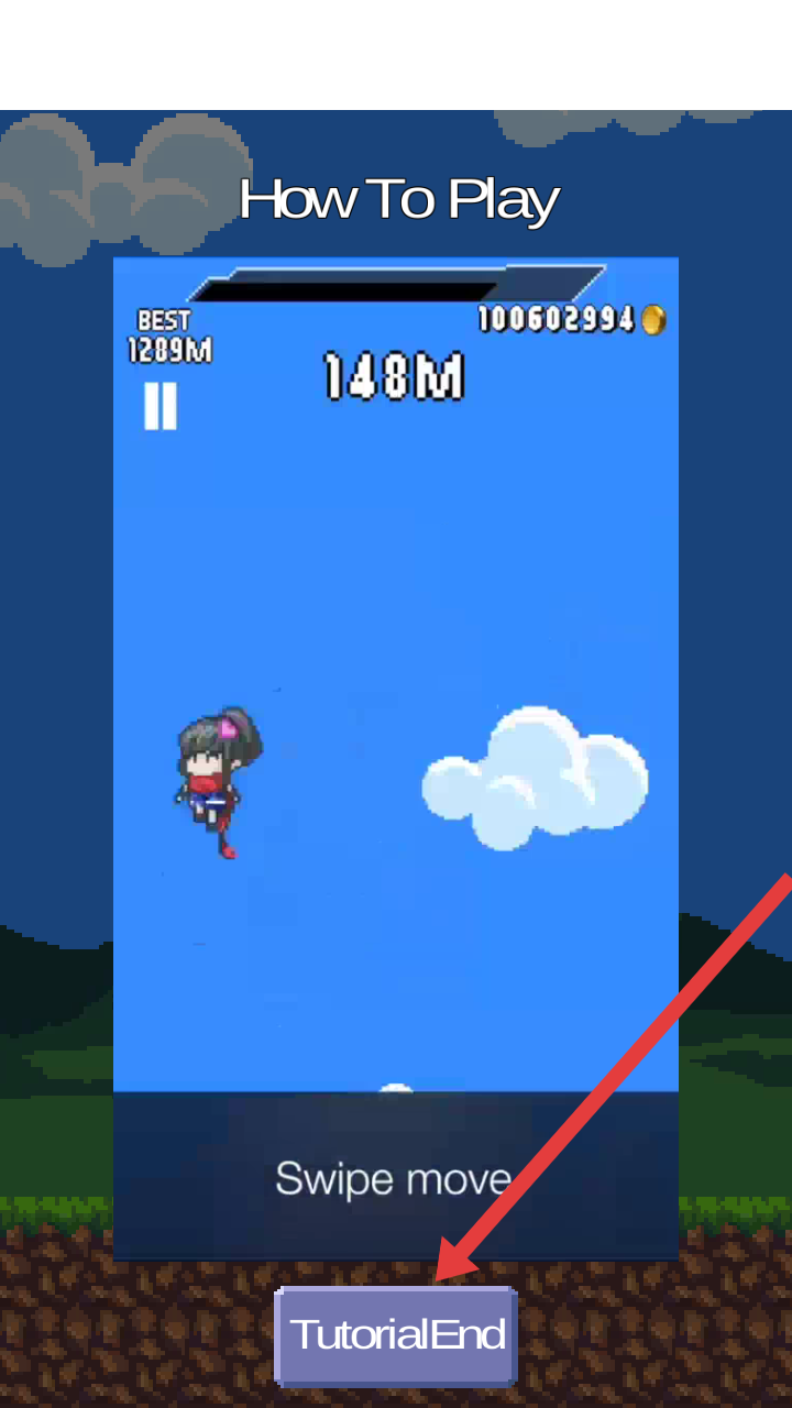1、在教程界面,按提示【Swipmove】滑动操控角色移动,完成教学后点击【TutorialEnd】结束教程。