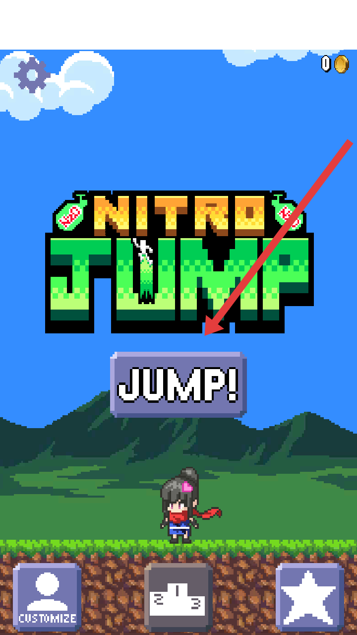 2、回到主界面,点击【JUMP】的按钮,让角色开始像素疯狂跳跃的的跳跃冒险。