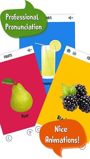 2、仔细观察食物图片细节,认真聆听语音发音,通过收集认知徽章解锁隐藏内容,预判学习进度提前调整策略,为用户创造富有教育意义与成就感的学习时空。