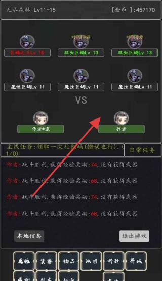 2、在战斗界面,挑战【无尽森林】怪物,完成【领取一次礼包】主线任务。