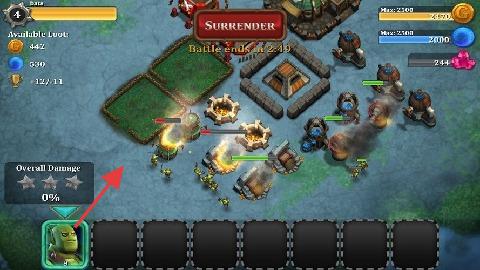 1、进入战斗,布置防御塔在路径,利用塔防攻击兽人,统计OverallDamage,争取高伤害通关。