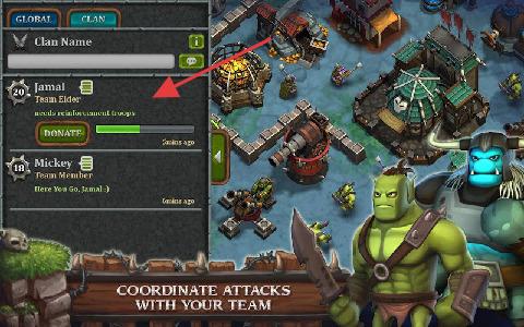2、加入clan(如“Jamal”的团队),与成员协作,通过捐赠等提升团队,协调进攻(CoordinateAttacks)。