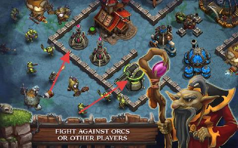 3、选择模式,对抗兽人波次或其他玩家,依据场景(如建筑布局)调整塔防,守护阵地赢取胜利。