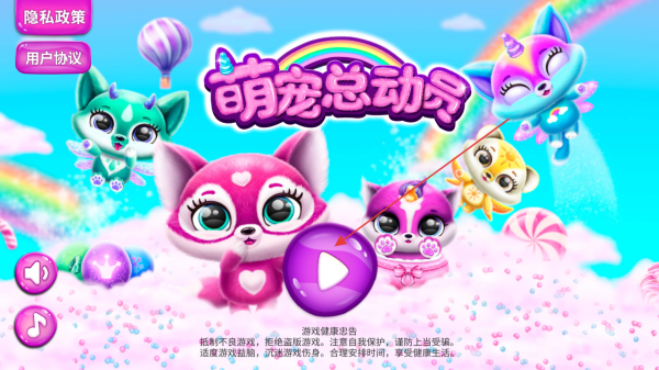 1、点击主界面紫色播放按钮,进入游戏,开启萌宠养成之旅。