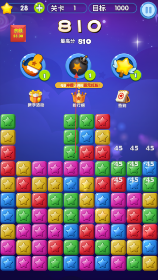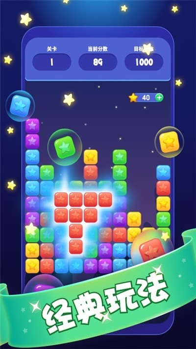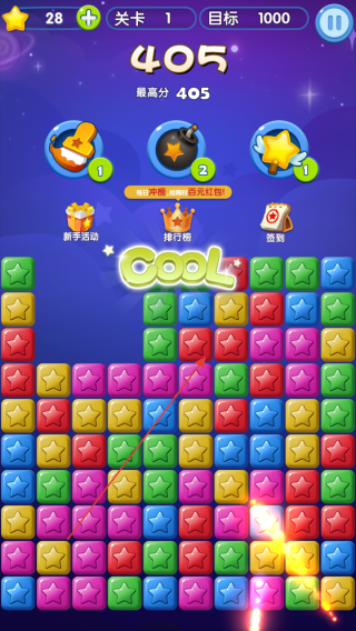 1、同色消除畅快比赛:通过消除相同颜色的星星展开畅快比赛,连锁消除触发高分特效,让每一次消除都充满爽快感,玩家可在比赛中挑战自我,刷新高分记录。