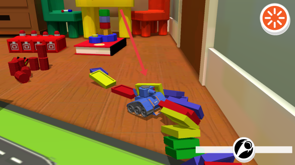 3、遇到彩色积木障碍,操控坦克撞击或绕行,突破阻碍,继续前进,完成关卡挑战。