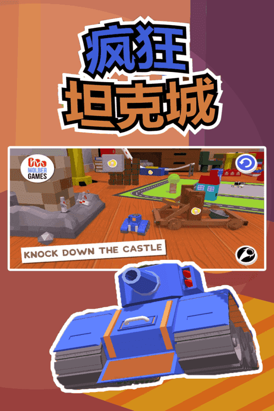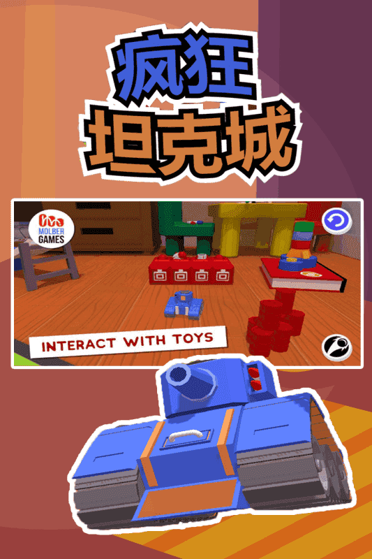1、点击红色播放按钮,进入《疯狂坦克城》,操控蓝色坦克,在玩具场景开启冒险。