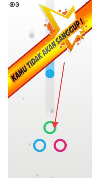 1、观察上方滚动小球颜色,当小球下落时,点击下方对应颜色圆环(如绿球点绿环)。