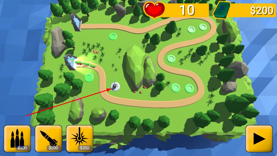 1、进入关卡地图,点击道路节点,花费金币建造防御塔(如对应$100等道具),阻拦敌人行进。