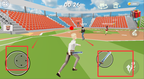 1、核心操作循环,左手控制角色移动定位,右手滑动屏幕调整击球角度,长按蓄力可触发强力击飞效果,但会消耗耐力值,需合理分配操作节奏。