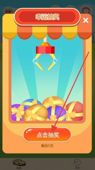 1、点击“幸运抽奖”弹窗的“点击抽奖”,消耗次数抽取奖励,获取汽车养成资源。