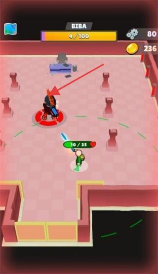 3、游戏中,挑战箭头指向的“BIBA”敌人,利用技能和走位战斗,击败首领获取奖励。