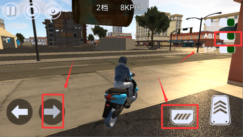 1、核心操作方式,左侧虚拟按钮控制油门和刹车,右侧重力感应调整车身倾斜。长按漂移键配合方向操作可触发不同等级的漂移动作。