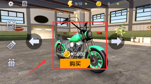 1、先选择一辆适合自己的摩托车,通过赛事和任务获取金币。