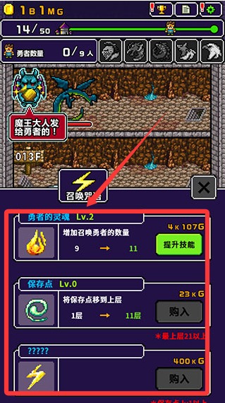 3、打开召唤咒语页面,可以查看技能信息,而且还能提升技能等级。