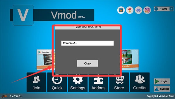 1、进入游戏后进入游戏主界面,需要输入自己喜欢的昵称后,点击Okay选项。