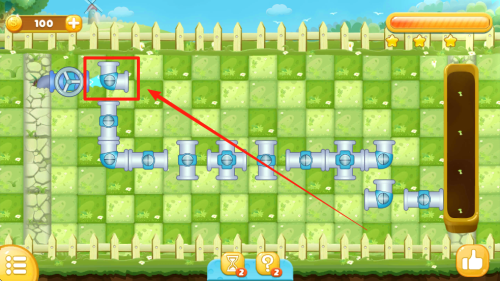 3、通过点击旋转零散管道,调整角度完成水路连通任务目标。