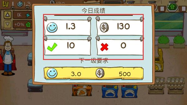 3、完成经营任务获取金币与口碑值,解锁墨西哥卷饼等新食谱,扩建用餐区与厨房设备,挑战连锁餐厅经营目标。