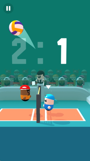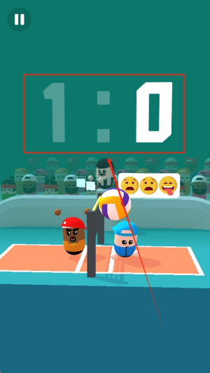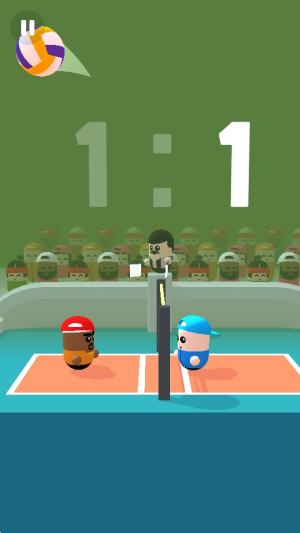 1、玩家可选择不同的对手展开精彩的竞技,尽情展示自己的排球技术,你只需要轻松点击屏幕,让角色跳跃得分。