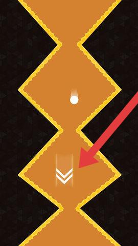 2、在小球下落的游戏中,操控白色小球,沿黄色路径下落,跟随箭头提示,避开黑色区域。