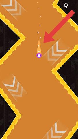 3、游玩过程下落过程中,收集紫色星星,积累分数(如右上角数字9),挑战更高纪录。