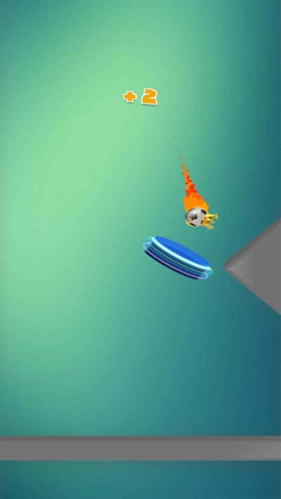 3、操控带火焰特效的球球,撞击蓝色圆盘等道具,获取+2奖励,在轨道上持续穿越闯关。