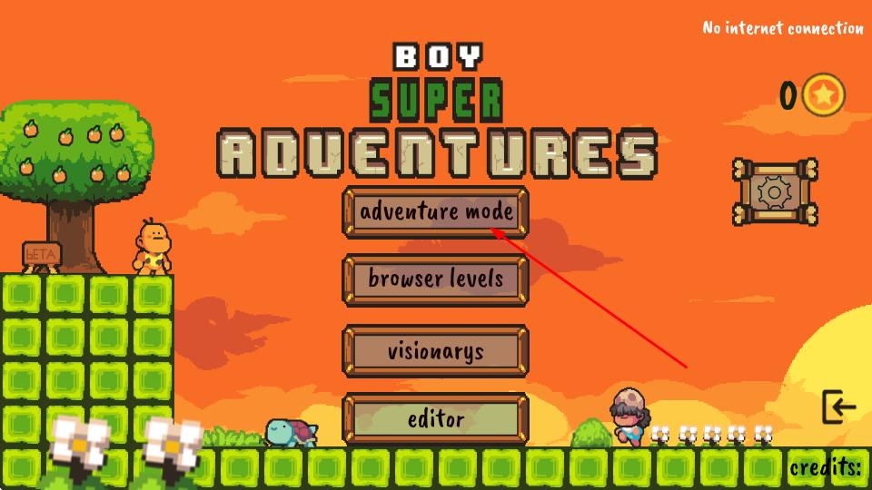 1、进入游戏主界面后,点击【advenfure mode】按钮开启冒险,这是踏入像素世界的第一步,需准确点击以顺利展开挑战之旅。