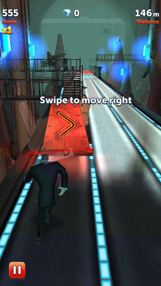 1、进入游戏后,选择初始关卡,操控特工通过滑动屏幕进行跳跃、下滑等操作,躲避前方的障碍物,开始跑酷之旅。