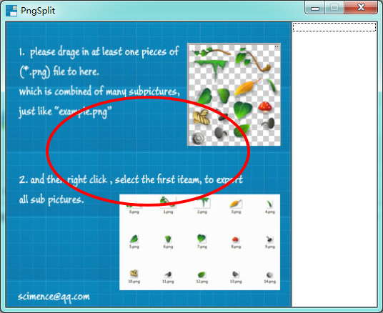 可将一张png合图中的所有子图,一一提取出来,分别生成单独的png图像。是TexturePacker的逆向转换工具。