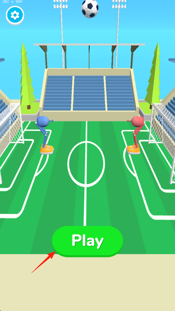 1、开局准备点击“Play”,选择蓝红队,控制火柴人角色,在足球场,准备争夺足球。