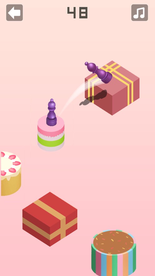 1、操控橙色小狗,看准时机,点击屏幕让其跳跃,精准落在礼盒堆上,堆叠层数,挑战高层。