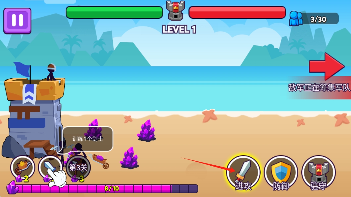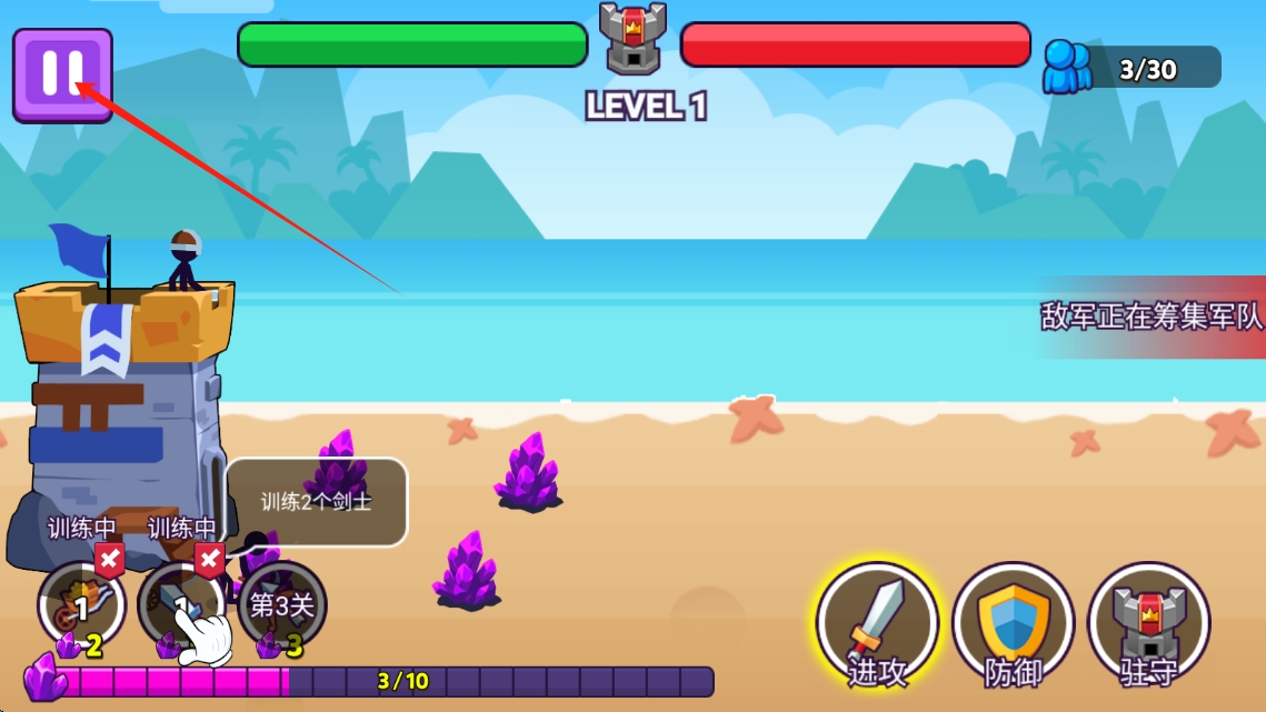 1、点击使用道具,通过合理分配金币升级英雄与建筑,利用连续成功防守触发"战术连击"状态,通过暂停功能调整策略与查看提示。
