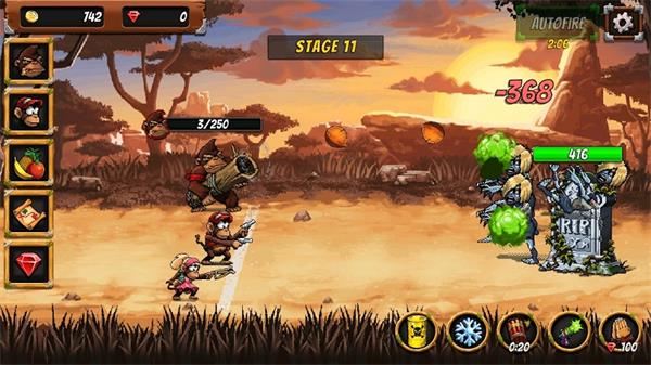1、角色系统:超过20种风格各异的人猿角色,每款拥有独特技能与定位,支持多种战斗流派,超过50个特色关卡,完全自定义的角色外观与技能组合,超过150种可解锁成就与装饰。