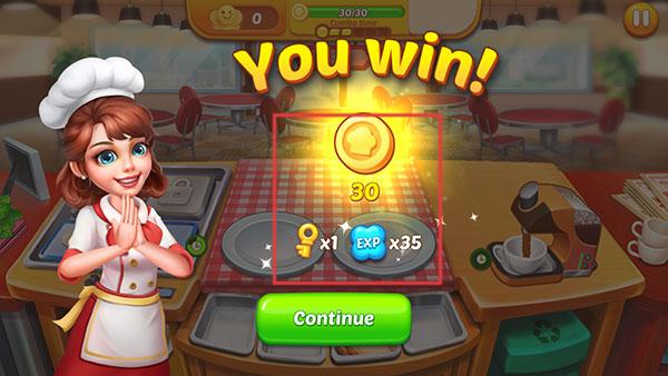 3、成功通关后获得金币等奖励,可解锁全新主题餐厅与限定菜谱,获得稀有厨具升级材料,拓展更丰富的美食经营版图。