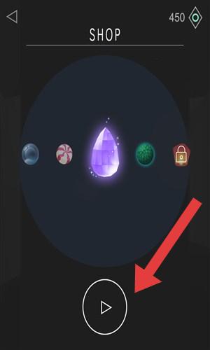 1、进入商店界面【SHOP】,选定紫色水晶样式,点击下方播放按钮,确定角色并启动游戏。