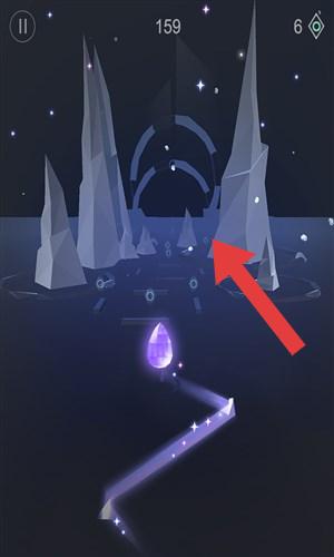 2、操控紫色水晶沿紫色路径前行,在冰峰场景中收集菱形元素,跟随轨迹穿越关卡。
