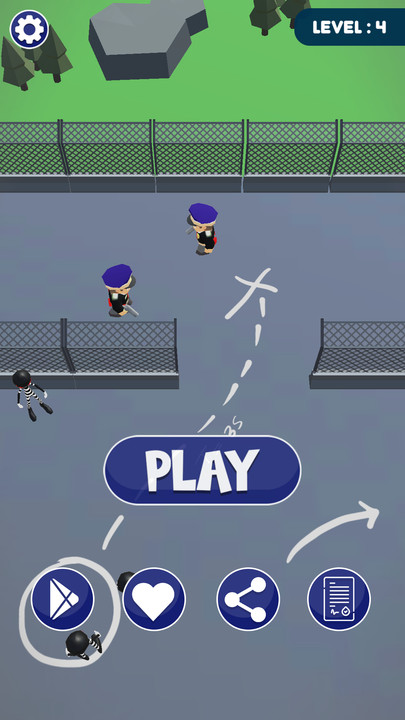 3、火柴人角色技能:火柴人拥有攀爬、潜行、快速奔跑等多种技能,玩家可根据关卡需求灵活运用技能,如攀爬高墙避开巡逻区域,潜行绕过监控探头,为越狱行动提供更多可能性。