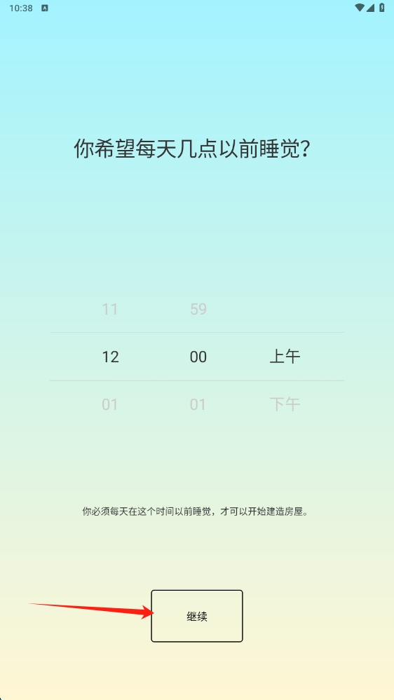 1、点击继续,利用连续成功睡眠触发"黄金时段"状态,通过设置提醒功能避免熬夜。