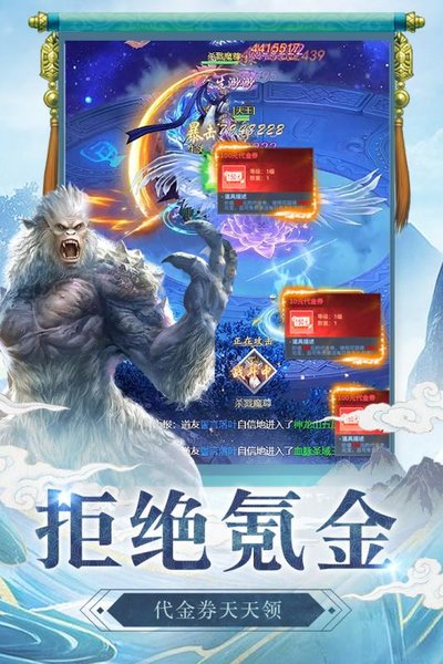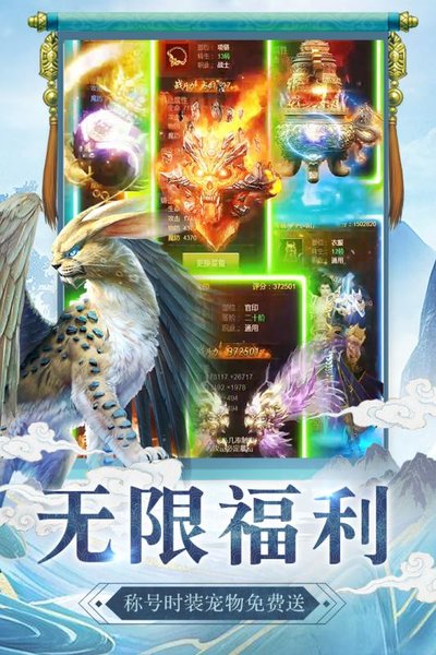 3、福利系统丰厚:新玩家进游戏激活终身返利,每天送代金券人人保送VIP,装备宠物等福利轻松获取,超高级爆率解决装备获取难题。