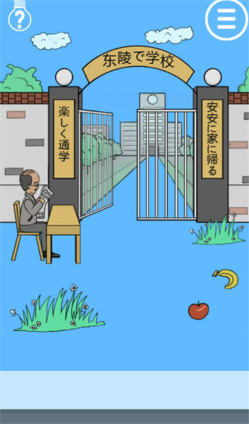 1、在学校大门场景,点击门卫桌子等物品,触发互动,获取推进关卡的线索或道具。