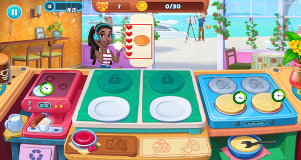 2、游玩的过程中,需按订单需求精准搭配食材,在限时内完成烹饪并上菜,通过提升菜品评分获取更高顾客满意度。